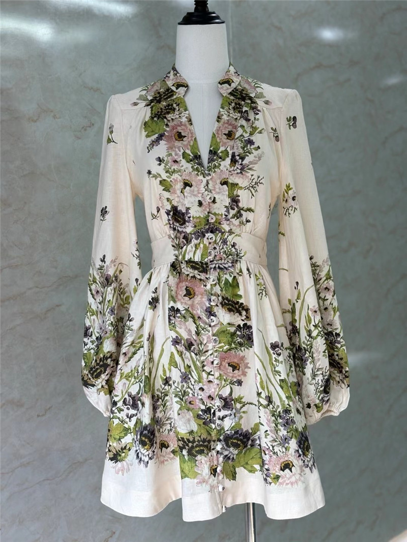 zimm deep V-neck lantern sleeve mini dress replica clothes