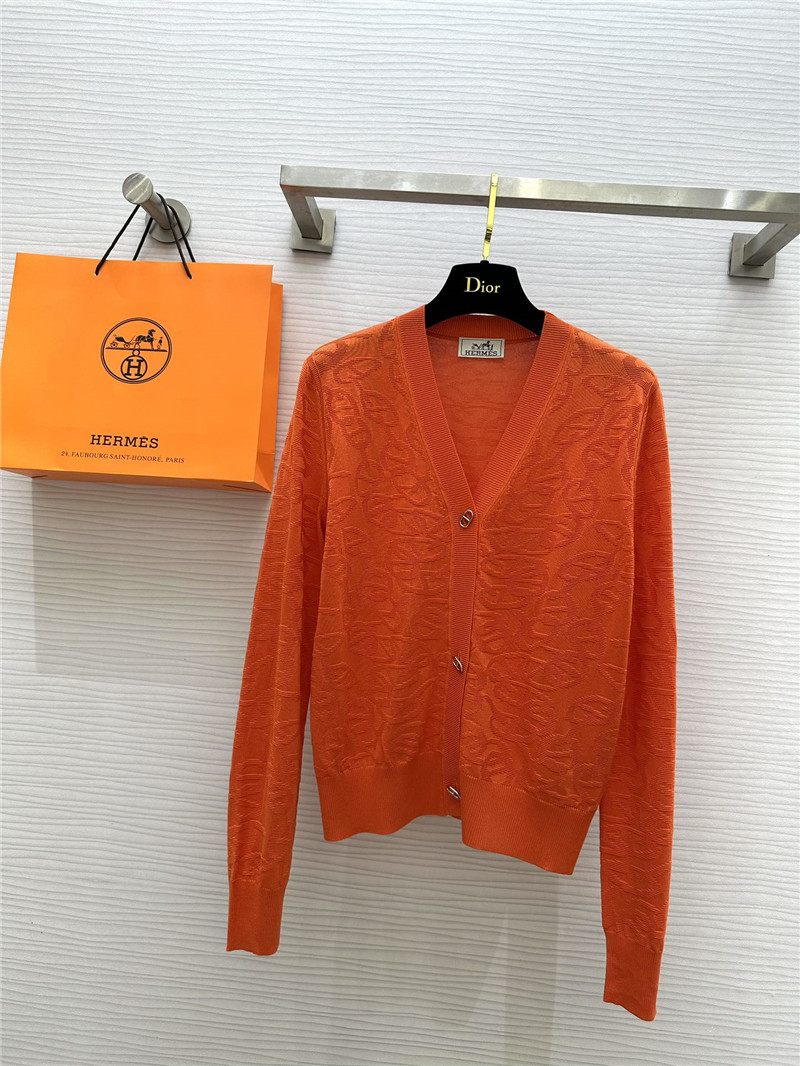 H**me5 v-neck orange monogram jacquard cardigan