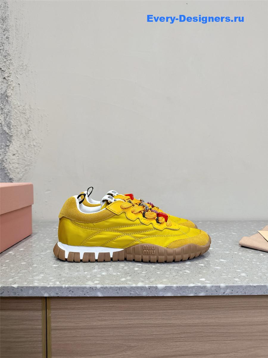 Miu Miu Ivory Tyre Technical Fabric Suede Sneakers Yellow