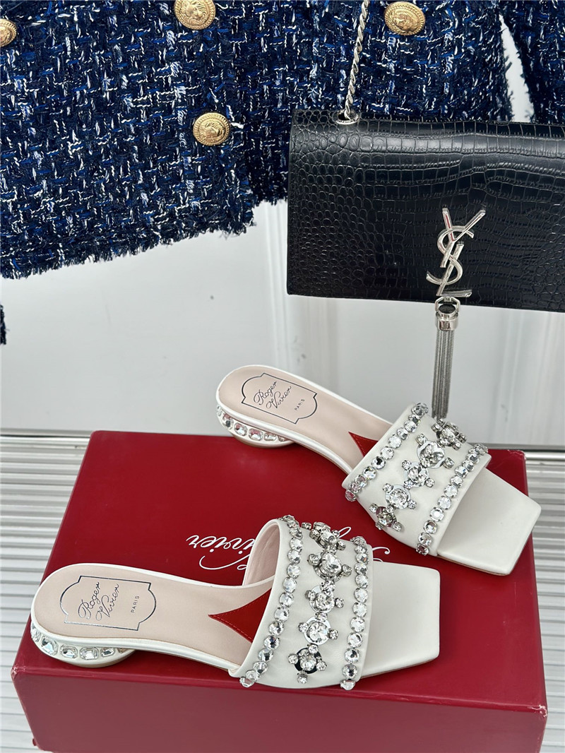 Roger Vivier Jewel Heel Disco Sandals in White Leather