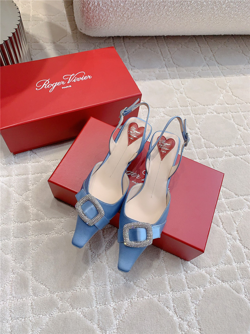 Roger Vivier Viv’ Canard Satin Blue Slingback Pumps