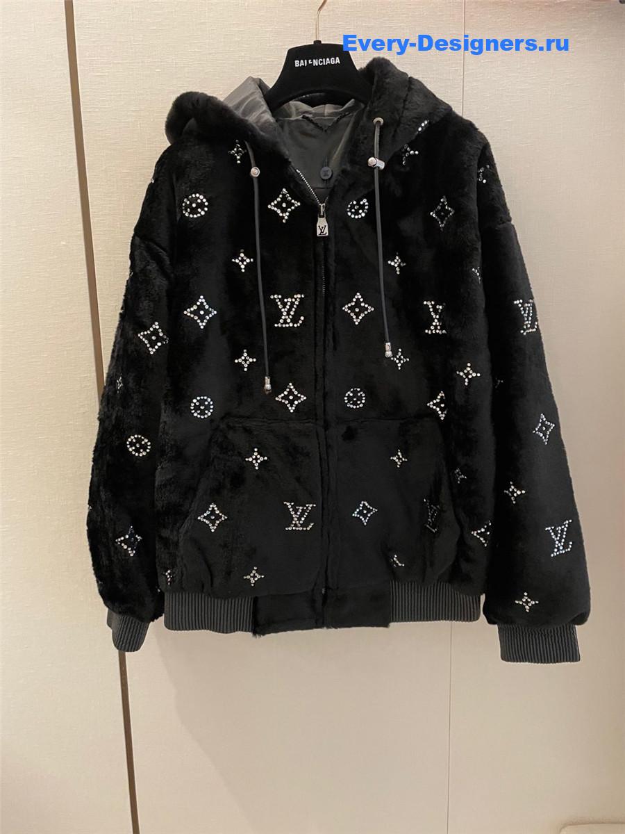 l0vis Vvtt0n logo rhinestone zip-up hooded jacket
